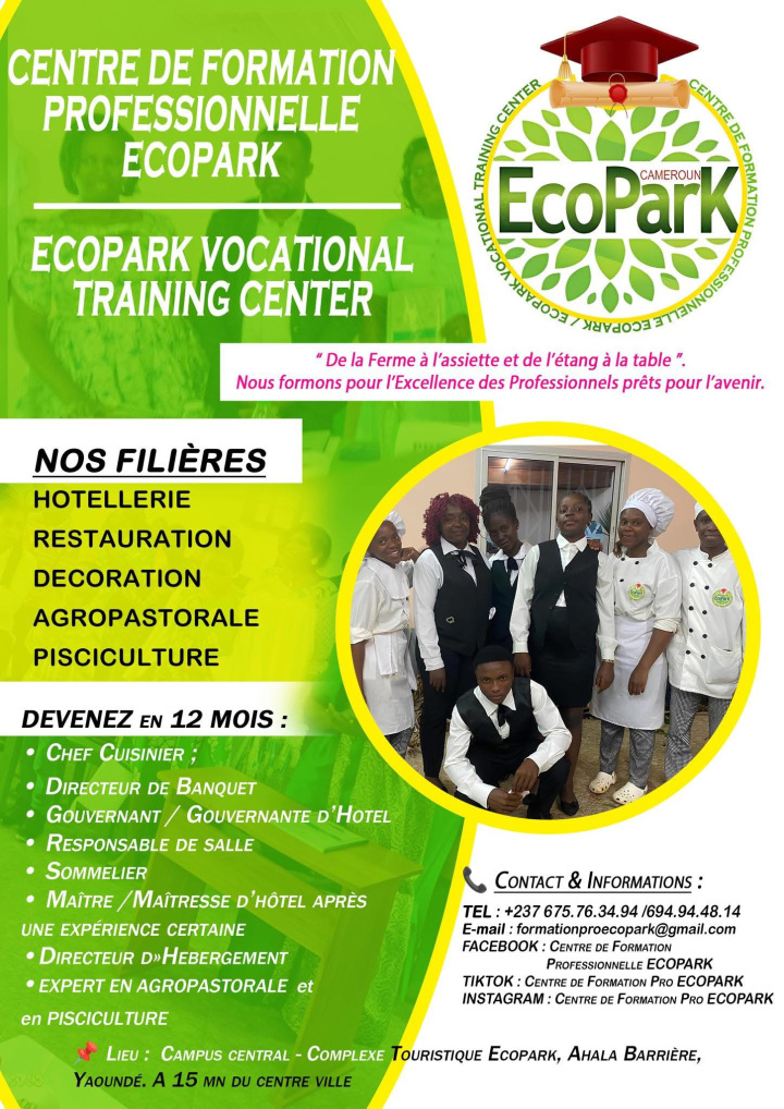Le Centre de Formation Professionnelle de Ecopark Yaoundé est un espace dédié à l’apprentissage pratique et à l’insertion professionnelle des jeunes et des adultes. Il propose des formations qualifiantes et orientées vers les métiers porteurs, répondant aux besoins réels du marché de l’emploi.